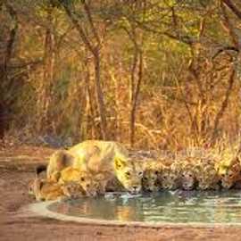 Sasan Gir is the only place in the world where you can see Asiatic lions. The Gir National Park and Wildlife Sanctuary is located in Gujarat, India. It was established in 1965 with a total area of 1412 km2 (about 258 km2 for the fully protected area (the national park) and 1153 km2 for the Sanctuary).
